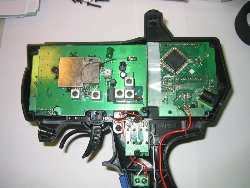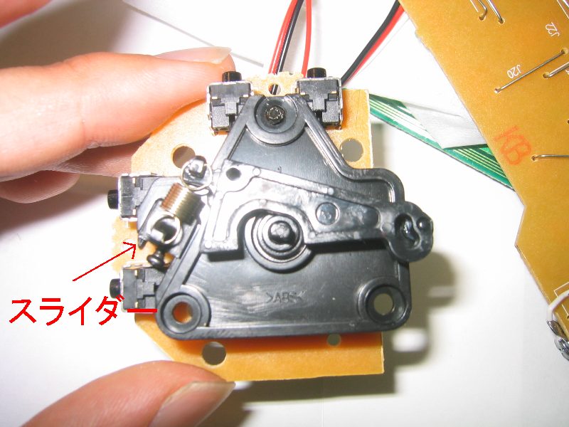 ステアリングの可変抵抗の足がハンダ付けされているので,その可変抵抗が付いている下のプレートも一緒にはずさないといけないわけです(可変抵抗のハンダをとればいいんですけど)。