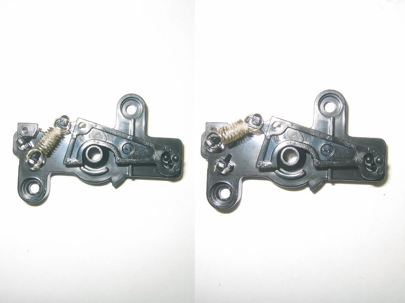 スロットル部は,スプリングのかけ位置で2種類の固さが選べます。