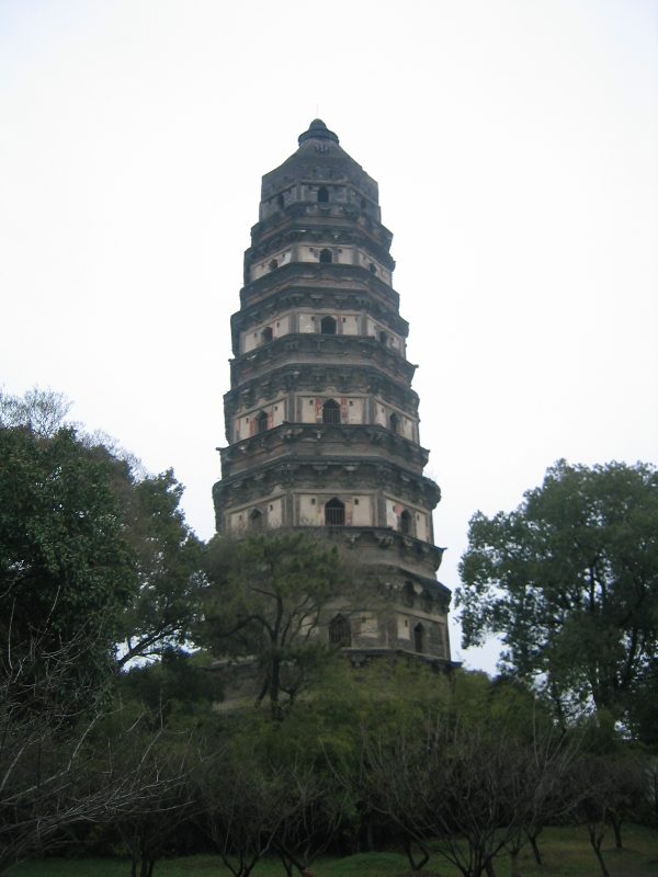 虎丘は,傾いた塔で有名です。