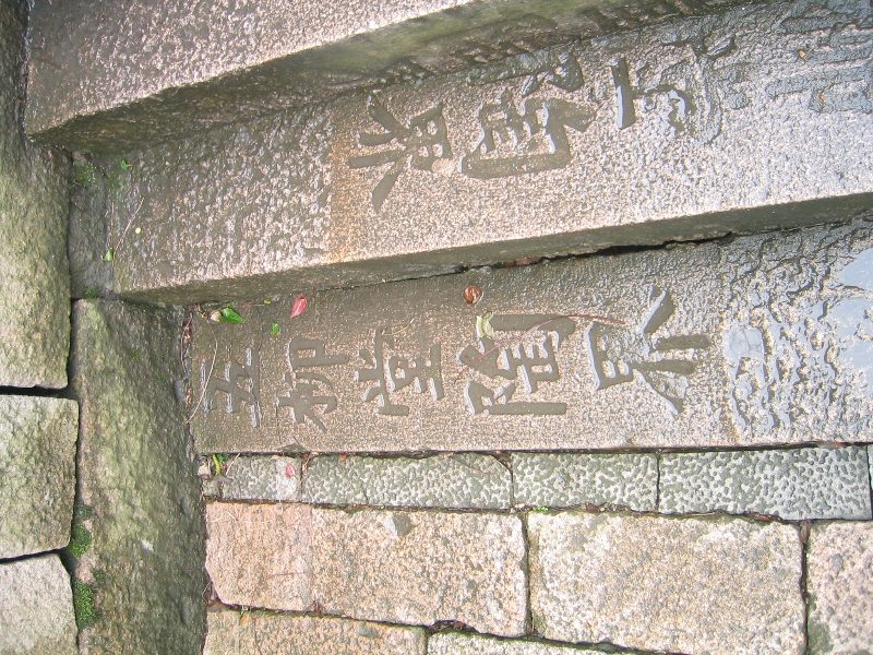 どうでも良いことですが,階段の石に何か書いてあります。