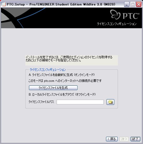 Solidworksは,ライセンスの手続きが面倒らしいんですが,Pro/Eはネット経由で簡単に手続きできます(出来ました)。