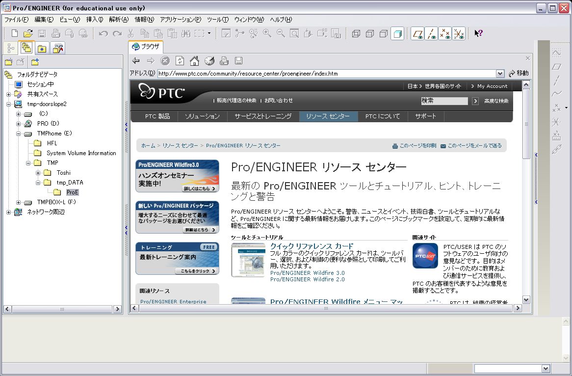 左の3番目をクリックすると,ブラウザが立ち上がり,PTCのサイトに繋がります。